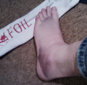I went to two tourneys last Sunday. I got 6th in sabre, 8th in foil and a twisted ankle from a flèche gone wrong =(